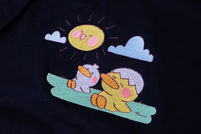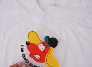 คุณภาพ : พิมพ์ภาพลงบนแผ่นฟิล์ม ด้วยหมึกสำหรับการย้อมผ้า แล้วนำแผ่นฟิล์มที่พิมพ์แล้วมารีดร้อนติดบนเสื้อ พิมพ์ลายชัดเจน สีสด คมชัด